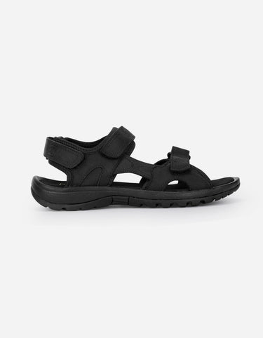 Sandalias Coastown-9-01 de cuero graso color negro, planta de goma y forro de textil