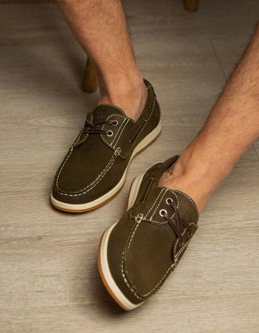 Zapatos Torbole-0-06 de cuero nobuk color verde, planta de goma y forro de textil