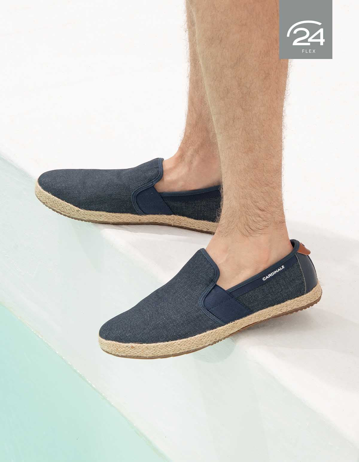 Alpargatas Vallarta-3-01 de textil color azul, planta de goma y forro de sin forro. Con tecnología 24 Flex para máxima comodidad.