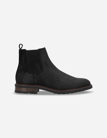 Botines Chelsea de cuero gamuza negro con diseño versátil que combina elegancia y comodidad. Planta de goma y forro textil suave. El corte Chelsea clásico se adapta fácilmente a diferentes estilos, desde casual hasta semi-formal. Ideal para el hombre que busca una pieza premium que trascienda tendencias y se mantenga en el tiempo.