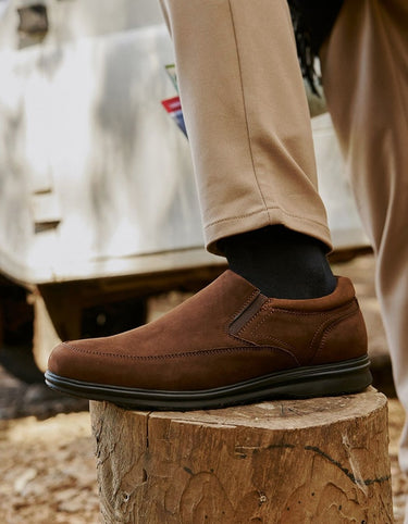 Zapatos Morne-3-20 de cuero nobuk color café, planta de goma y forro de textil
