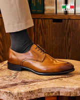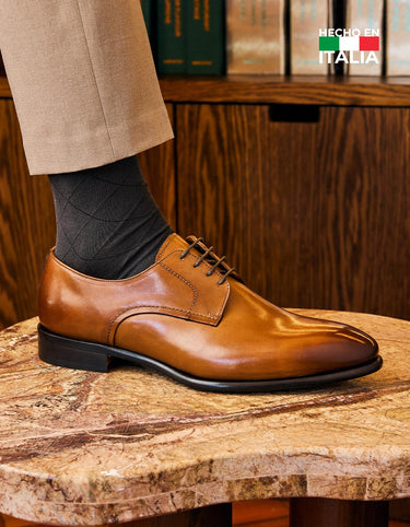Los Zapatos Magno Cusani-0-01 destacan por su alta calidad y elegancia atemporal. Fabricados en Italia con cuero premium en tono brandy con una cuidadosa terminación artesanal, planta de suela de cuero cosida para mayor refuerzo y durabilidad, y forro interior, totalmente de cuero. Versátiles y sofisticados, perfectos para eventos formales o semiformales, estos zapatos son la elección ideal para quienes buscan distinción en cada paso.